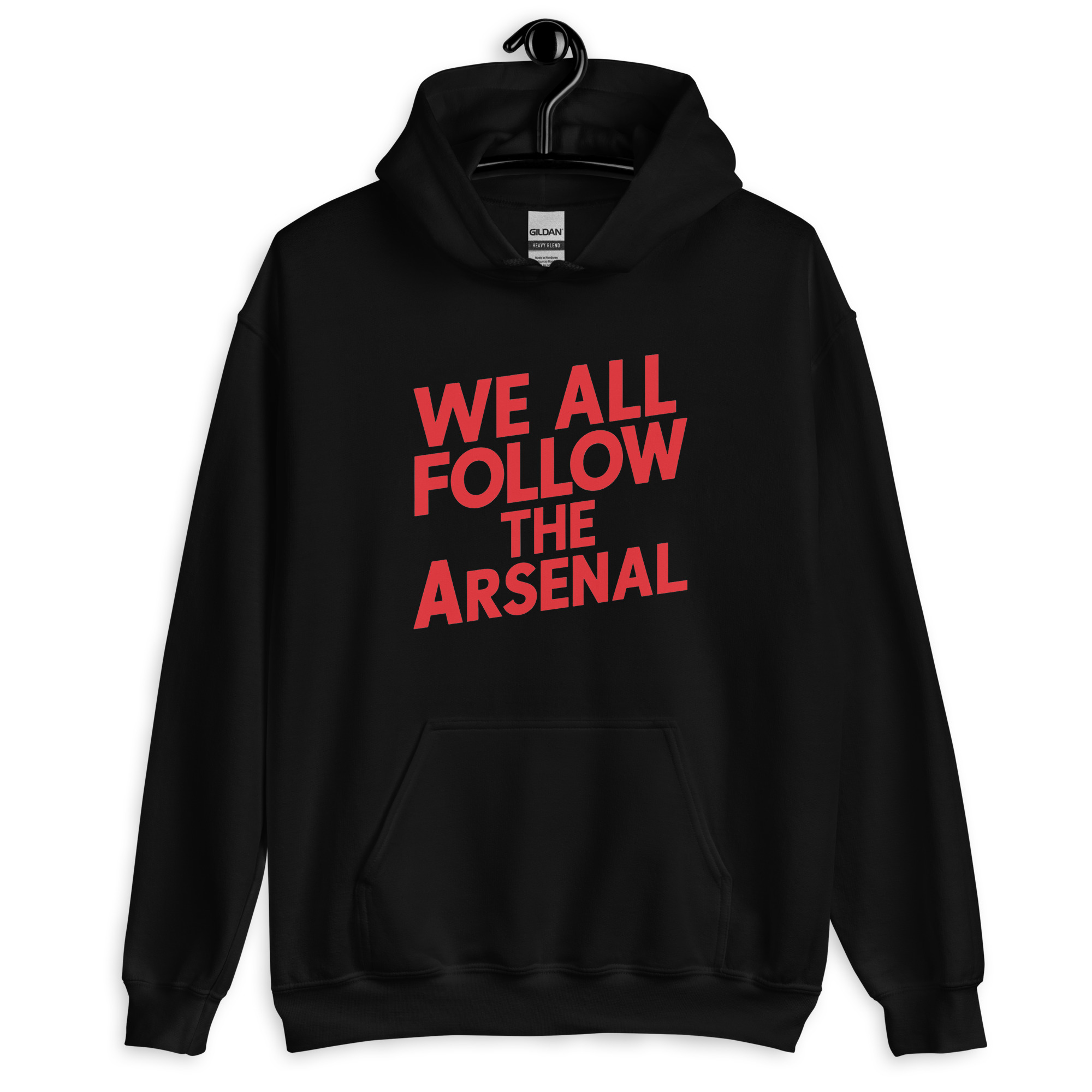 From the Clock End to away days up north, one chant unites Gooners worldwide: We all follow the Arsenal. This striking red hoodie brings the anthem to life—loud, unapologetic, and full of that North London bite.